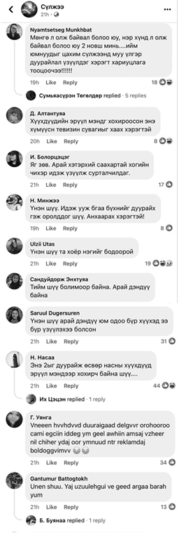 -Ажиглаад байхад нийгэм массаараа шүүмжилж байна. Нийгэмд ийм асуудал газар авахад нөлөөлсөн нэг хүчин зүйл бол манайд “Инфлюсер, маркетингийн тухай хууль” байхгүй юм. Та бүхэн ч гэсэн Хуулийн албан ёсны портал сайт дээр хайлт хийгээд үзэж болно. Тиймээс л иймэрхүү зах замбараагүй, дураараа нөхцөл байдал үүссэн байх гэж харж байгаа. Мөн манай улсад насанд хүрээгүй хүүхэд сахарлаг, чихэрлэг, хүнсний бүтээгдхүүн сурталчлах хориотой байдаг. “Зар сурталчилгааны тухай хууль”-ийн 16.1.Зар сурталчилгаа бүтээх, байрлуулах, түгээхэд дараахь зүйлийг хориглоно. 16.1.8. чихэр, давс, транс болон ханасан тос ихээр агуулсан хоол, хүнсний бүтээгдэхүүний зар сурталчилгаанд хүүхэд оролцуулах гэж заасан, хориглосон байдаг.