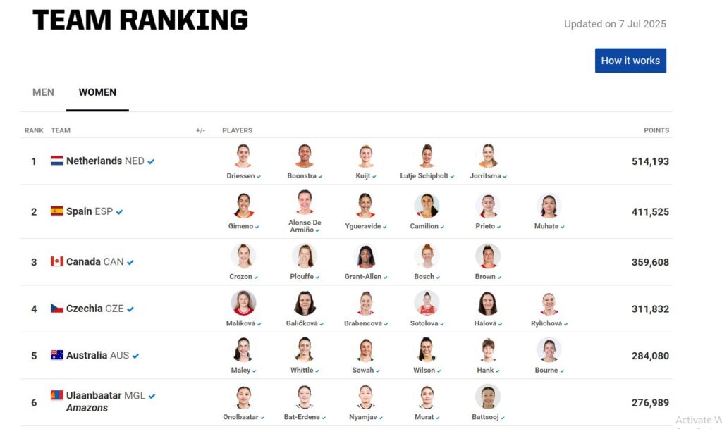 Тэгвэл ДАШТ-ий дараа багуудын оноо шинэчлэгдэж манай шигшээ баг 276,989 оноотойгоор Дэлхийн чансааны зургадугаар байрт дэвшлээ. Тэдний ард БНХАУ-ын шигшээ баг жагсаж байгаа бол, тэдэнтэй хамт Дэлхийн аваргын алтан медалийн төлөө өрсөлдсөн Нидерландын улсын шигшээ чансааг тэргүүлж байна.