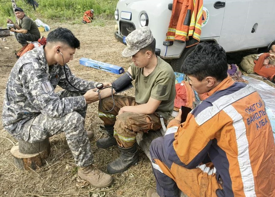 Сэлэнгэ аймгийн Мандал, Хүдэр, Ерөө суманд гарсан ой, хээрийн түймрийн голомтод үүрэг гүйцэтгэн ажиллаж байгаа ажилтан, алба хаагчдад эрүүл мэндийн тусламж, үйлчилгээг Онцгой байдлын байгууллагын эмч нарын бүлэг газар дээр нь үзүүлжээ.