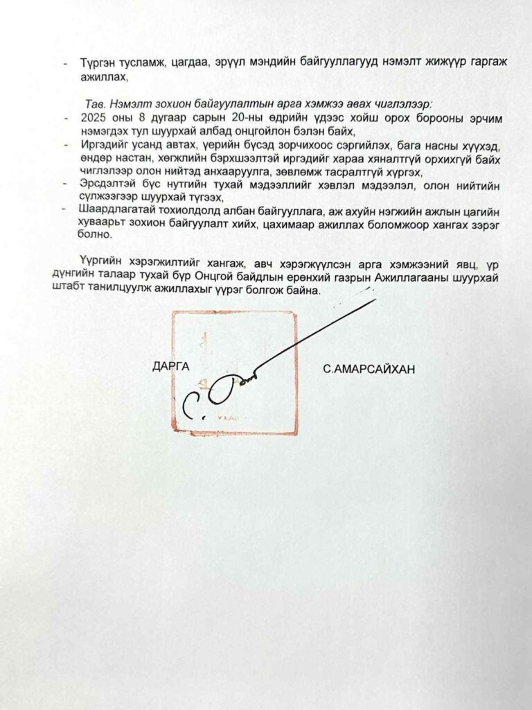 Мөн Шадар сайд С.Амарсайхан иргэд, аж ахуйн нэгж, байгууллагуудыг цаг агаарын мэдээ, анхааруулга, сэрэмжлүүлгийг тогтмол хүлээн авч, өөрийн болон бусдын аюулгүй байдлыг хангахад онцгой анхаарахыг уриаллаа.