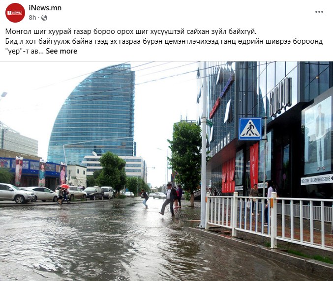 Өчигдөр орсон борооны дараа цахим орчинд зарим иргэд өмнөх жилүүдийн зураг мэдээллийг цацаж буруу мэдээлэл түгээжээ. Тэгвэл энэ нь үерийн үед шуурхай баг ажиллахад төвөгтэй байдал үүсгэдэг талаар Геодези, Усны барилга байгууламжийн газраас мэдээллээ.