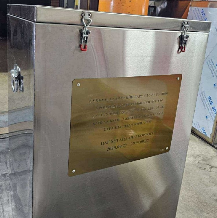 Сүхбаатар аймгийн 1 дүгээр сургуулийн захирал үүнийг Монголд, сургуульдаа хэрэгжүүлэхээр санаачилж, залуу багш нар дэмжжээ. Уг бортогыг 50 жилийн дараа уг сургуулийн багш, сурагчид 150 жилийн ойгоороо нээх ёстой. Өнгөрсөн үеэс тэдэнд ирсэн захиа сонирхолтой байж болов уу?