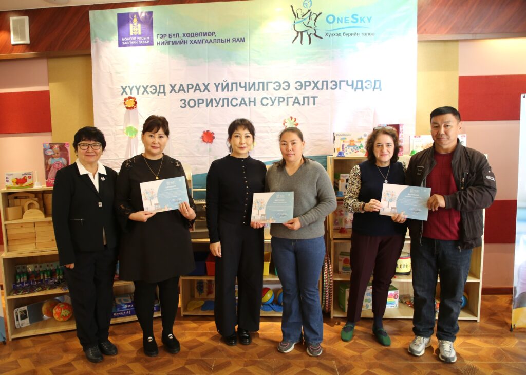 Хүүхэд, гэр бүлийн хөгжил, хамгааллын ерөнхий газар, One Sky Mongolia Олон Улсын байгууллагатай хамтран Баянзүрх, Сонгинохайрхан, Баянгол, Налайх дүүргийн хүүхэд харах үйлчилгээ эрхлэгч 10 байгууллагад тус бүр 3.5 сая төгрөгийн үнэ бүхий хэрэглэгдэхүүнийг өнөөдөр хүлээлгэн өглөө.