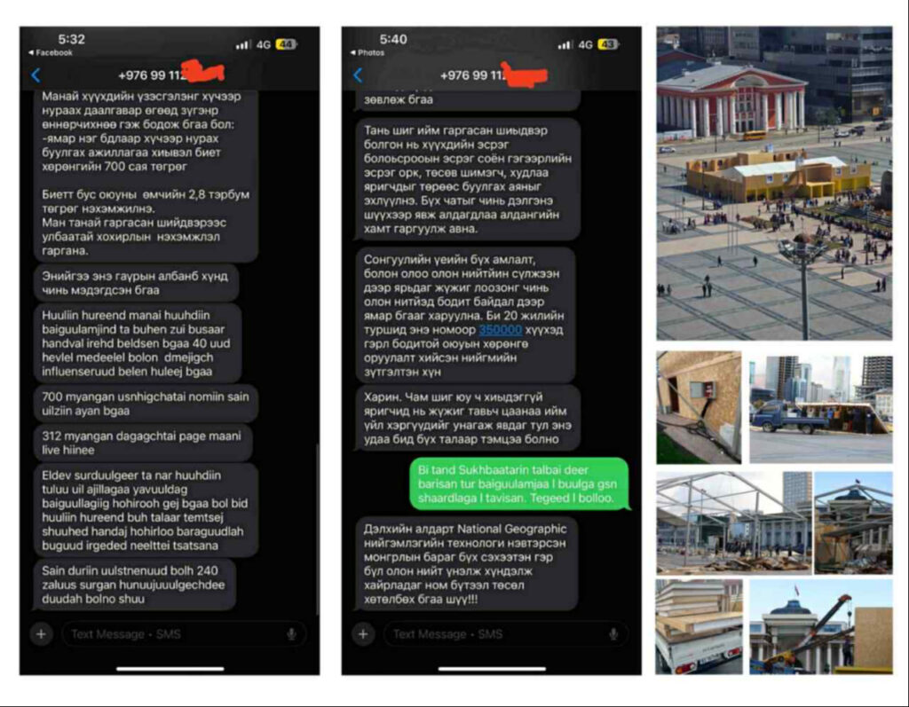Мөн “Динза Цондоолойгийн анд найзууд” НҮТББ-ын захирал А.Дэлгэржаргал нь уг байгууламжийг буулгахгүй хэмээн НЗД-ын орлогч А.Амартүвшин рүү дарамталсан, сүрдүүлсэн, шаардсан агуулгатай зурвас бичих, утсаар залгаж доромжлох үйлдлүүдийг удаа дараа хийсэн гэнэ.