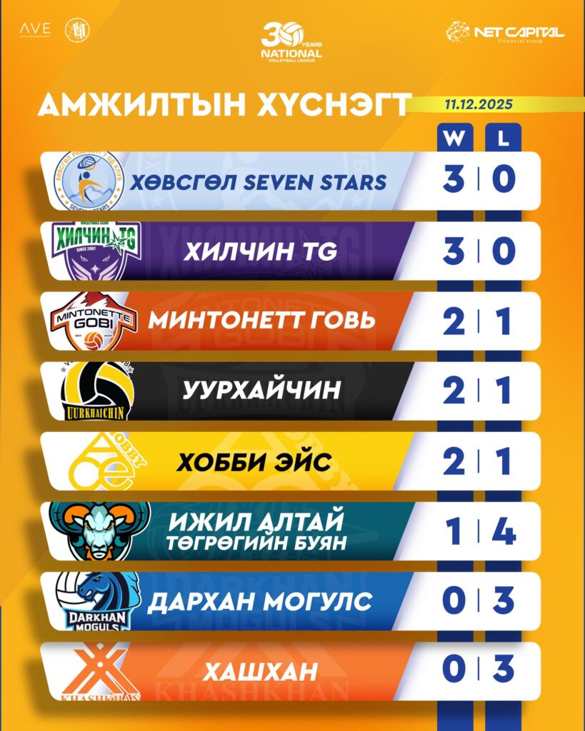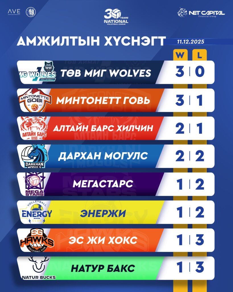 Монголын Волейболын Холбооноос зохион байгуулж буй 2025-2026 оны улирлын “Үндэсний дээд лиг”-ийн тоглолтууд үргэлжилж байна. Эдгээр тоглолтуудыг PSN5 болон NSports суваг албан ёсны эрхтэйгээр эх орон даяар шууд дамжуулан үзүүлж буй. Тэгвэл Time.mn сайт өчигдөр болсон сонирхолтой тоглолтуудыг тоймлон хүргэж байна. Өчигдөр буюу энэ сарын 11-ны өдөр Волейболын Дээд лигийн талбайд нийт гурван тоглолт болсон.