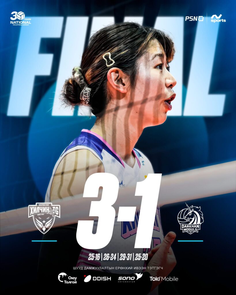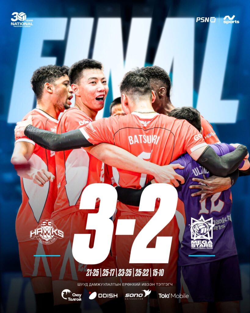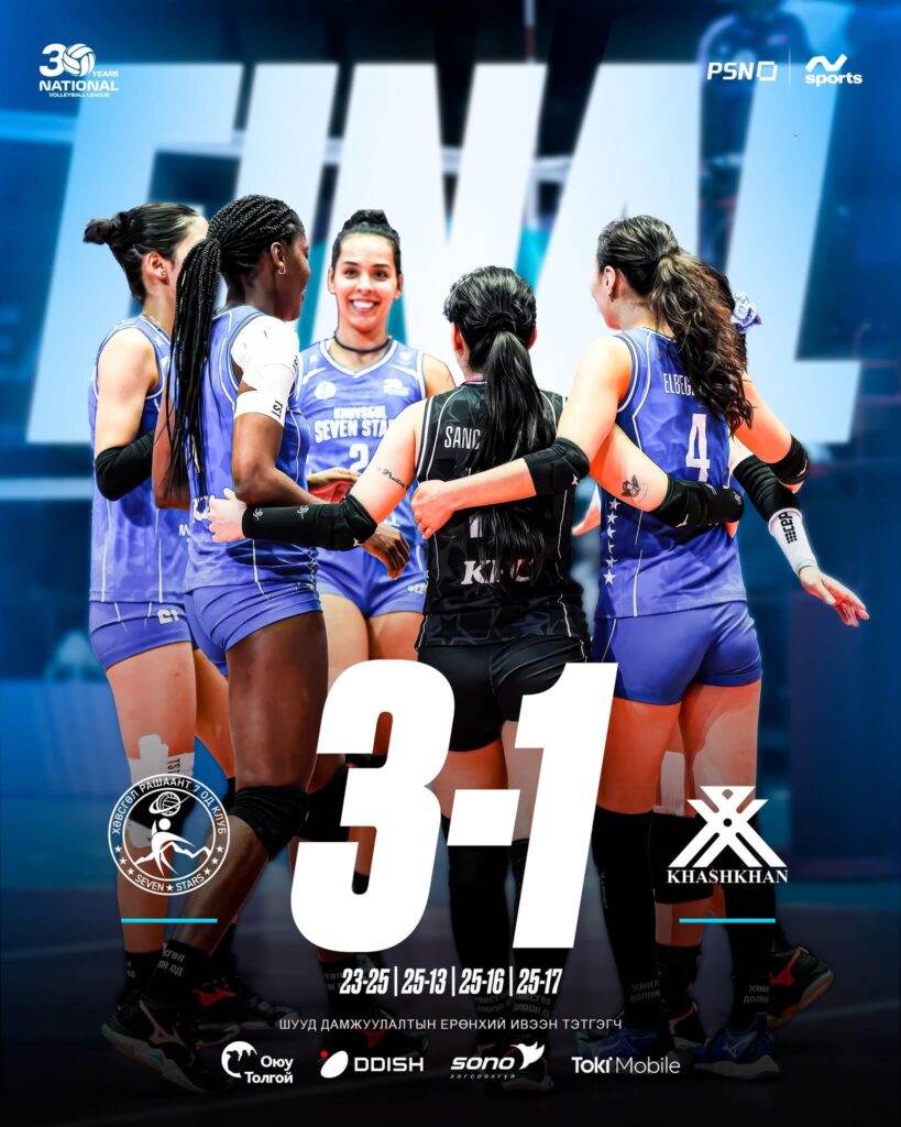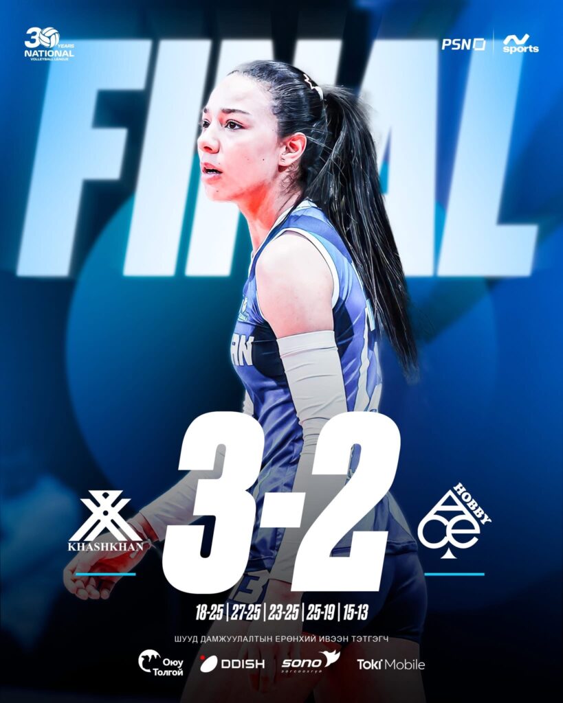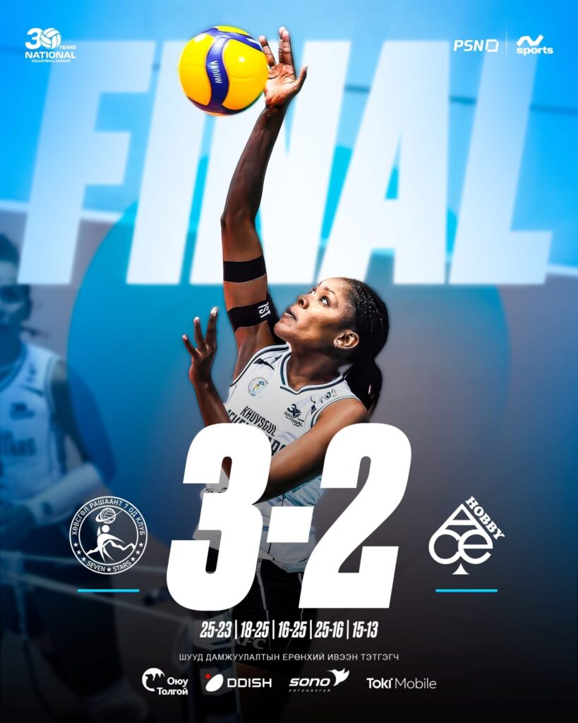 “Хөвсгөл 7 од”- “Хобби Эйс”-ийг 3:2-оор буулгаж авлаа. “Хөвсгөл 7 од” багаас импорт тоглогч Кастилло Витал Ислэн 21 довтолгоо, 2 давуулалт оновчтой болгож нийт 23 оноогоор бүх тоглогчдыг тэргүүллээ.
