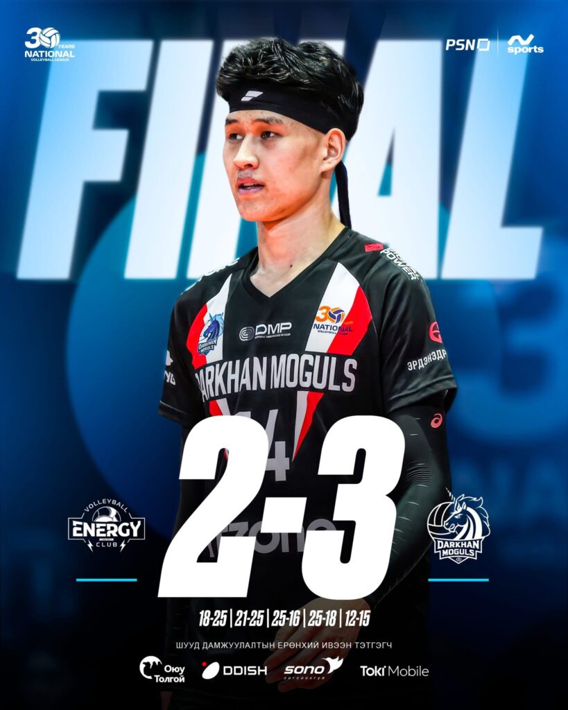 “Дархан Могулс” тоглолтын эхлэлийг сайн хийж 2:0-ын харьцаатай болгосон ч 3-р ээлжийн тоглолтод “Энержи” багийн хамгаалалтаас довтолгооны шилжилт илүү сайн байж 3,4-р ээлжийн тоглолтод илт илүүрхэв. Улмаар 5-р ээлжийн тоглолтод 15-12-оор “Дархан Могулс” хожлоо.