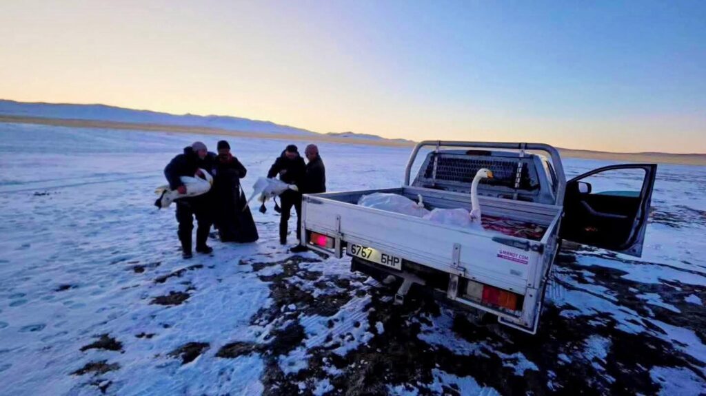 Баянхонгор аймгийн Жаргалант сумын Байцагаан нууранд 6 хун шувуу намар буцалгүй үлджээ. Үүнээс 1 нь эндэж, үлдсэн 5 нь явж чадахгүй байхыг нутгийн малчин анзаарч, холбогдох байгууллагад дуудлага өгсөн байна. Түүний дагуу Жаргалант сумын байгаль хамгаалагч уг хунгуудыг сумын төвд авчирчээ.