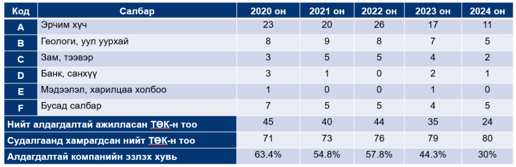 2022 он хүртэл төрийн өмчит компаниудын дийлэнх нь алдагдал хүлээдэг, тэр нь байдаг л зүйл болсон байв. Гэвч түүнийгээ татан буулгадаггүй, жил бүр төсөв баталж өгөөд, тэжээсээр ирлээ. Алдагдалтай ажилласан компани 2023 оноос 44.3% болж, түүнээс хойш бага ч болов цөөрч байгааг доорх хүснэгтээс харна уу.