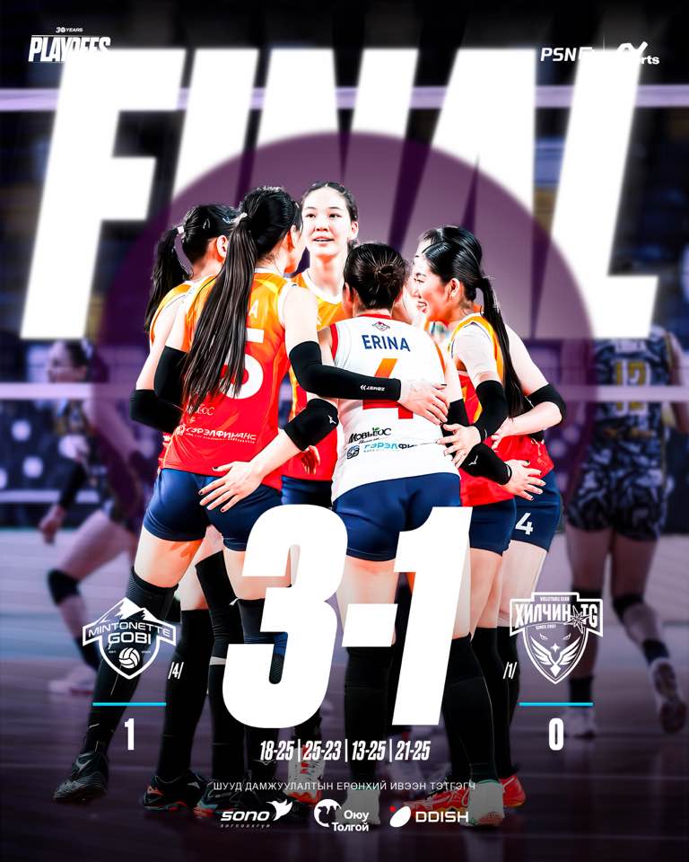 Өнөөдрийн тоглолтод “Минтонетт говь” 3:1-ээр хожиж, цувралыг тэргүүлж эхэллээ. Энэ тоглолтод “Хилчин ти жи” клуб довтолгоогоор илүү байсан ч хамгаалалт, хаалт дээр гол зөрүү гарлаа. Товчхондоо өнөөдрийн тоглолтод илүү сайн бэлдэж, гэрийн даалгавраа бүрэн гүйцэд гүйцэтгэсэн баг нь “Минтонетт говь” байлаа.