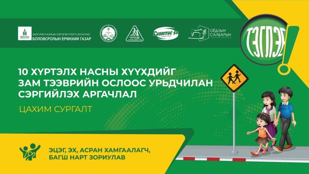 “10 хүртэлх насны хүүхдийг зам тээврийн ослоос урьдчилан сэргийлэх аргачлал” сургалтыг 2025 онд 150 цэцэрлэгт зохион байгуулж, 11,000 эцэг эх, асран хамгаалагч, харгалзан дэмжигчийг хамруулжээ. Сүүлийн гурван жилийн хугацаанд нийт 700 гаруй удаагийн сургалтаар 60,000 орчим эцэг эх, асран хамгаалагч тус сургалтад хамрагдсан байна.