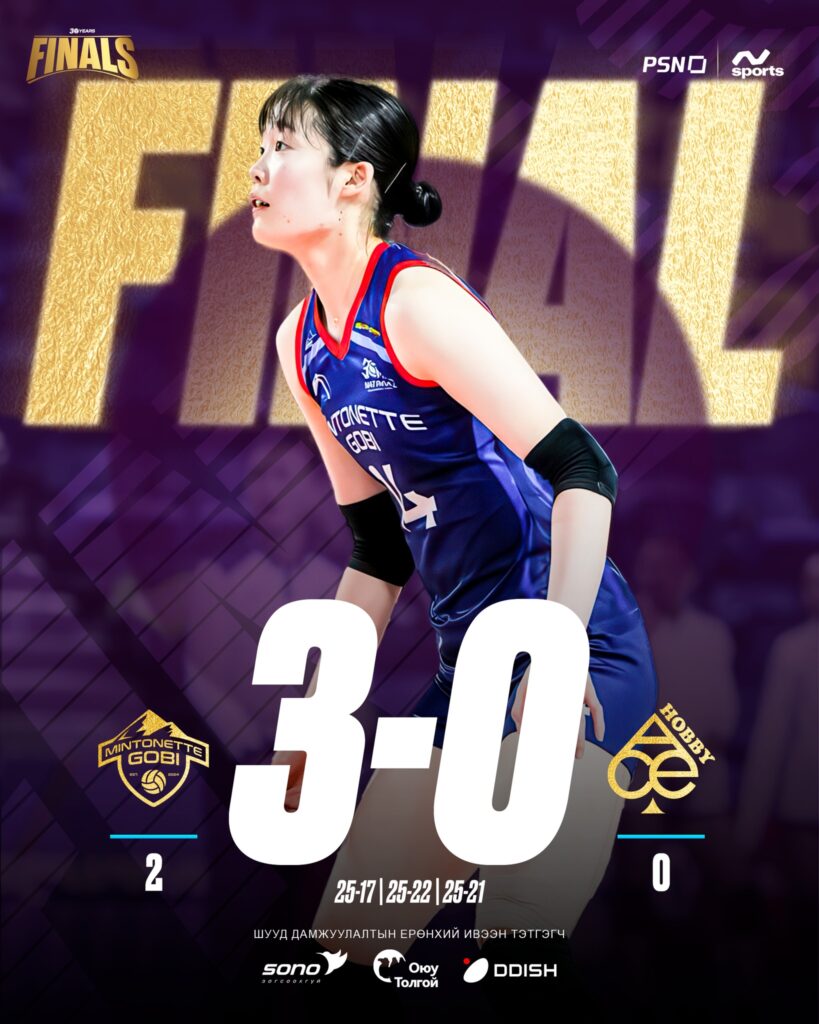 Хобби эйс хагас шигшээ цувралд тун сайн тоглолтыг үзүүлж Хөвсгөл Севен Старсыг буулгаж авсан. Харин финалын шатны тоглолтод дараалан хоёр ялагдлаа. Ингэхдээ нэг сетийн хожил ч авч чадсангүй. Тэдний хамгаалалт довтолгоо муу гэхээс илүү Минтонет Говийн хамгаалалт, довтолгоо, багийн ойлголцол илүү сайн байгаа нь хожил байгуулахад гол нөлөө үзүүлж байна. Цувралын хоёр дох тоглолтын шилдгээр 15 довтолгоо, 1 хаалт, 1 давуулалт амжилттай гүйцэтгэсэн Оноүэ Мизүхо тодорсон. Түүний хувьд довтолгоо дээр илүү идэвхтэй байлаа.