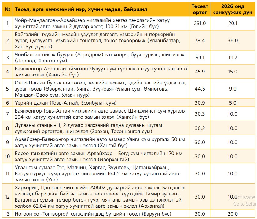 Ижилхэн 30 тэрбум төгрөгийн өртөгтэй 4 замыг энэ онд тус бүрт нь 10 тэрбум төгрөг амсуулахаар тусгажээ. 4 төсөлд тараах 40 тэрбум төгрөгөөрөө эдгээр замын аль нэийг нь бүрэн дуусгаж болох байлаа. Гэтэл алийг нь ч бүрэн дуусгалгүй, бүгдийг нь эхлүүлээд орхих гэж байна.