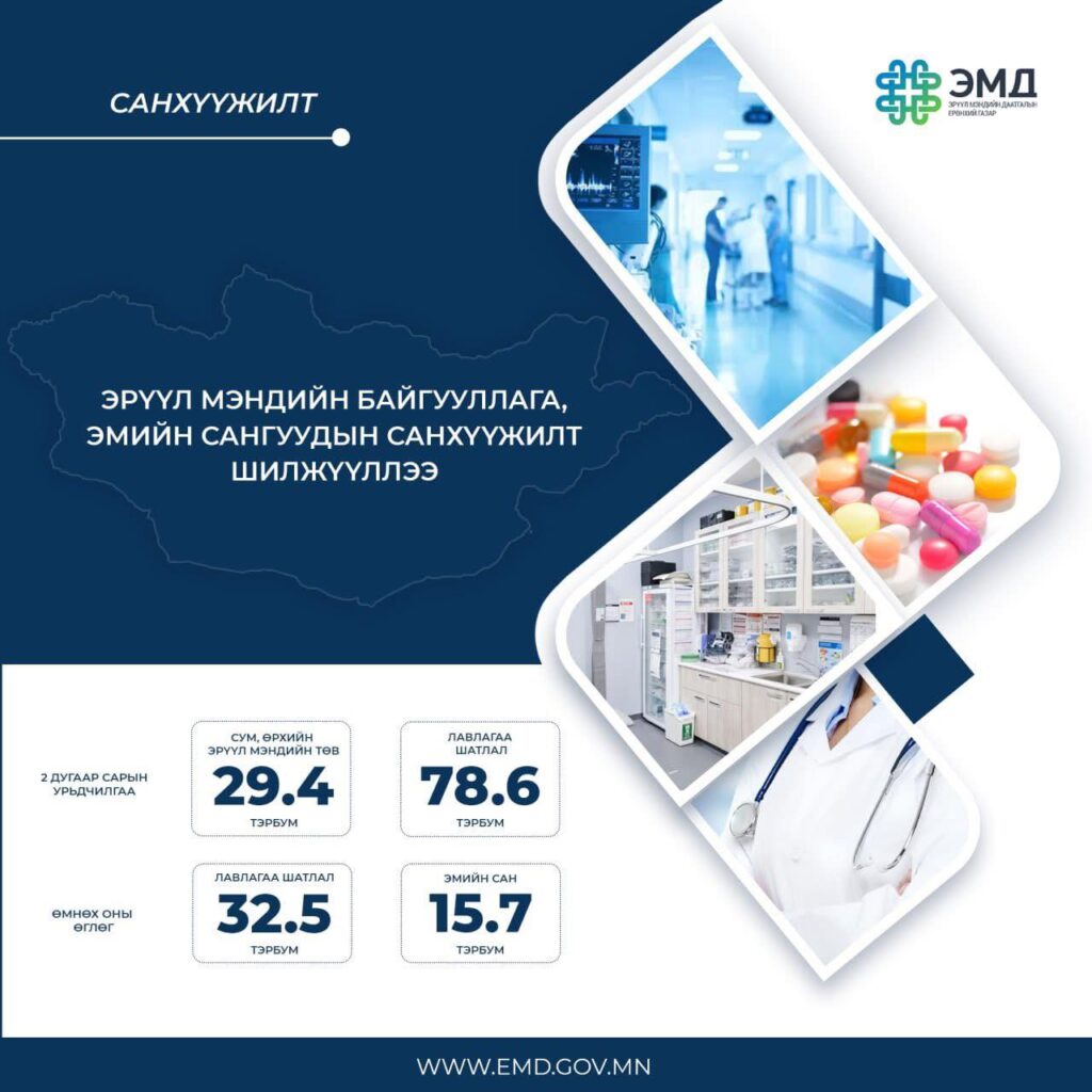 Лавлагаа шатлалын эрүүл мэндийн байгууллагуудад хоёрдугаар сарын урьдчилгаа санхүүжилтээр 78,6 тэрбум төгрөг,