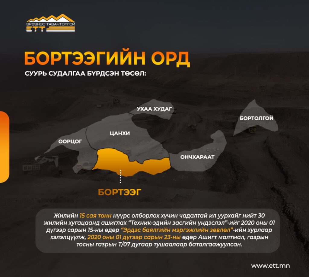 Тавантолгой бүлэг ордын ашиглагдаагүй Бортээг хэсгийг эдийн засгийн эргэлтэд оруулах, хөрөнгө оруулж, хамтран ажиллах сонирхолтой дотоод, гадаадын аж ахуйн нэгжүүдээс санал авах, нээлттэй сонгон шалгаруулалтыг зарлалаа. Cонгон шалгаруулалтыг ил тод, нээлттэй явуулах бөгөөд сонгон шалгаруулалтын хугацаа 1 сар буюу 30 хоног үргэлжилнэ.