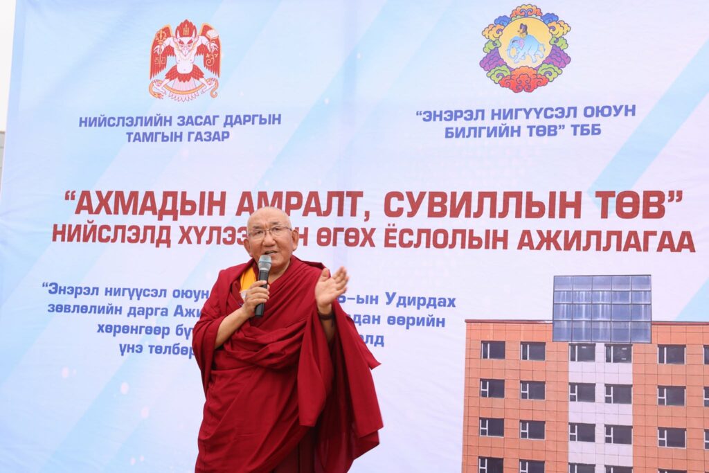 “Энэрэл нигүүсэл оюун билгийн төв” ТББ-ын тэргүүн Ажиа Гэгээн Лувсантүвдан “Ахмадуудад буян болохоор энэ өдөр өнжүүлэх төвийг барьсан. Өндөр өнжүүлэх төвдөө ахмадууд дасгал хөдөлгөөн хийж, эрүүл мэнддээ анхаарах боломжийг бий болгож байна. Үргэлжлүүлэн хашаанд нь мод, зүлэг тарьж, ногоон байгууламж хийнэ” гэв.